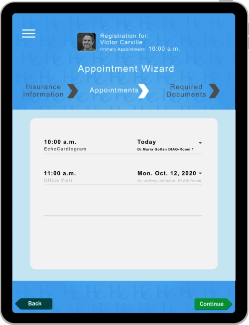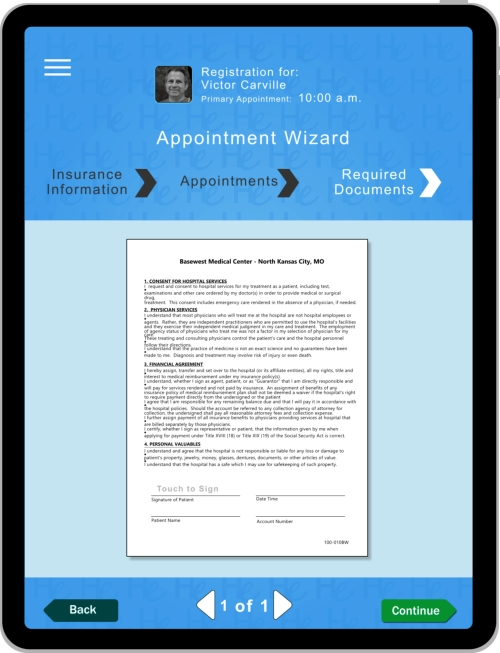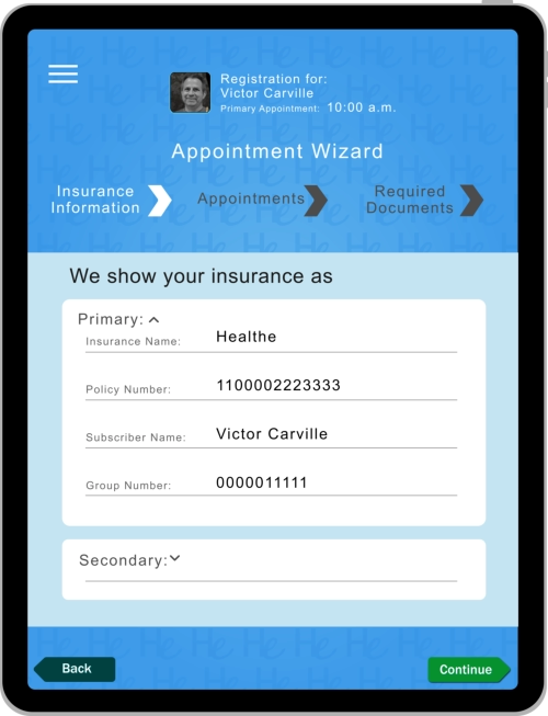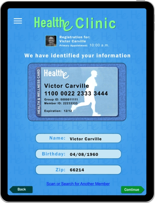 This was an early patient visit solution designed for Cerner’s on-site clinic. Although these are now very common in Physician’s offices, at the time, this was the first proposed application to sign in, scan or view your insurance documents/card, view certain medical records and history, and medical information.