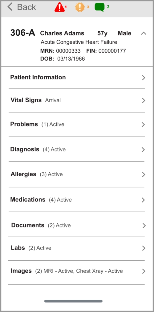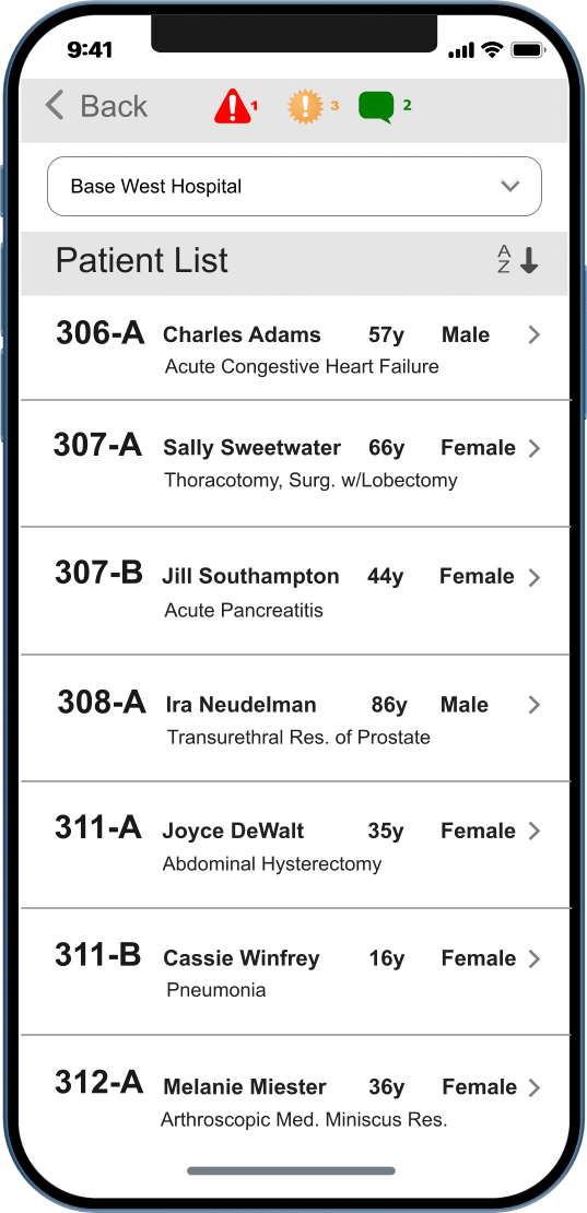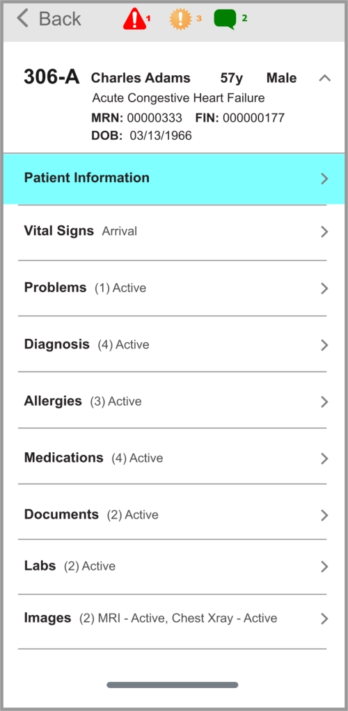This Early Prototype demonstrates how a clinician can observe a patient directly from the CareLink app on their phone. This sample workflow simulates a physician checking the patient list, selecting a patient, checking up to the minute patient information including alerts and vital signs, then checking medications, then creating a new medication order to submit and filled by connected hospital clinician. This application was originally designed for iPhone version 6 (shown Below), then updated for iPhone 8 and above.