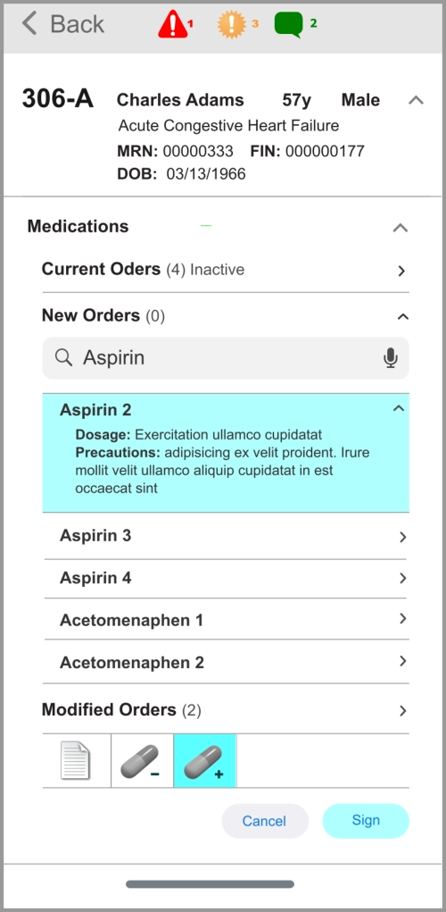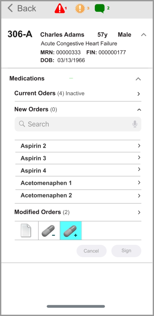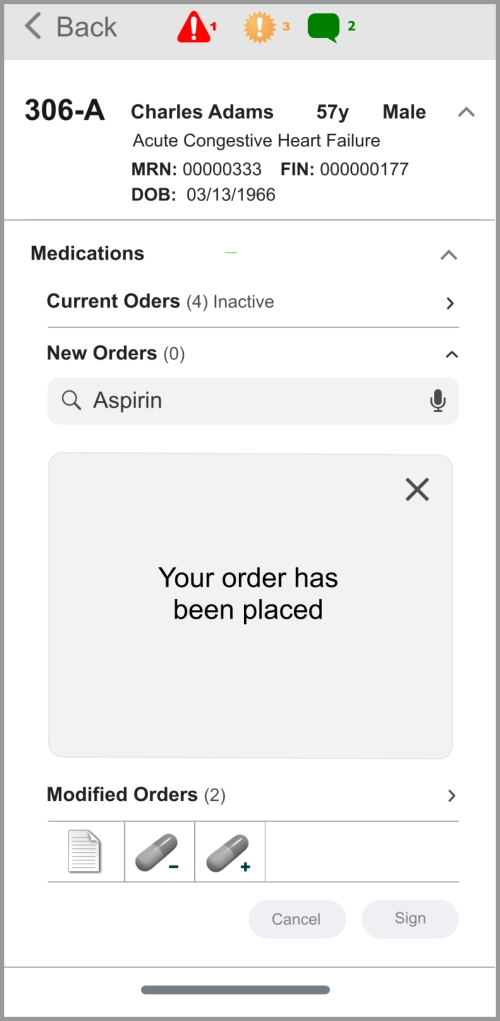 •Small sample of process Flow to submit order•Alerts•Patient List•Check vitals•Medications