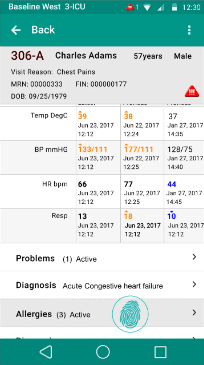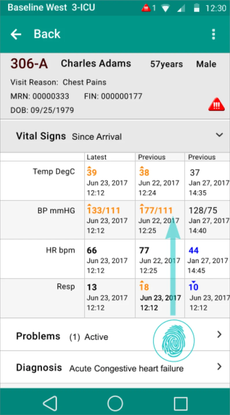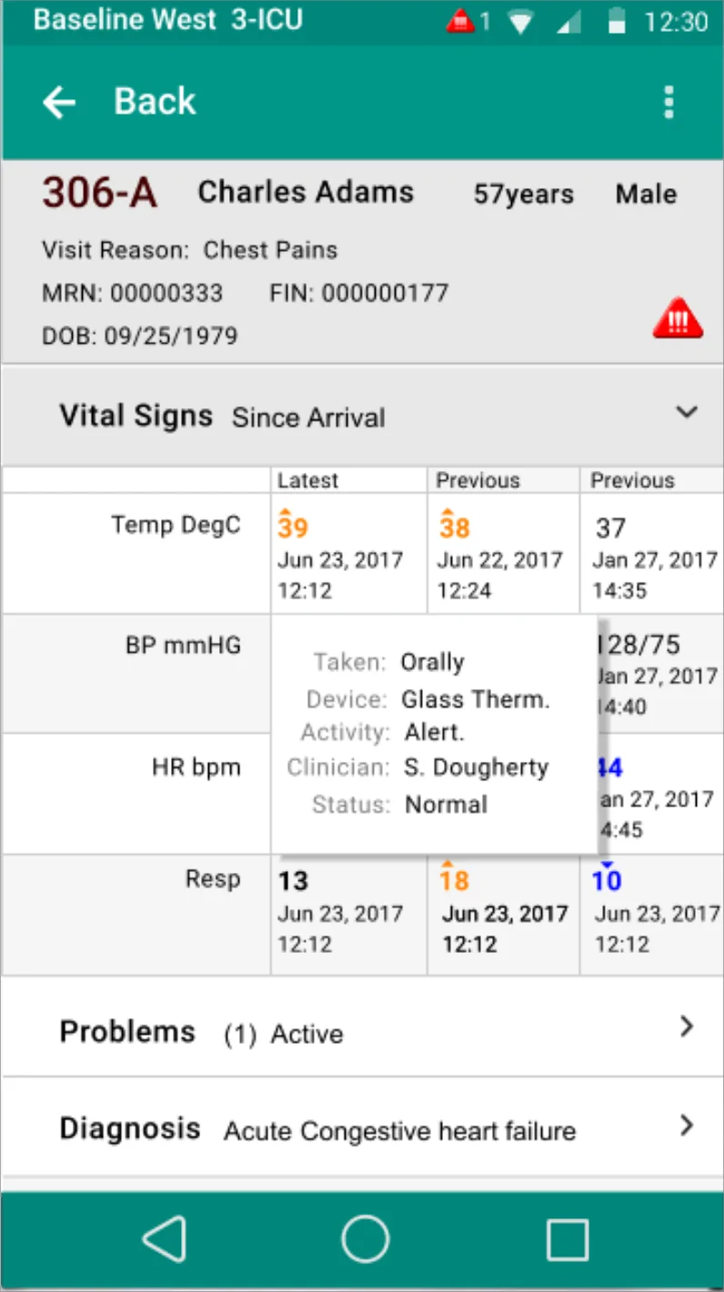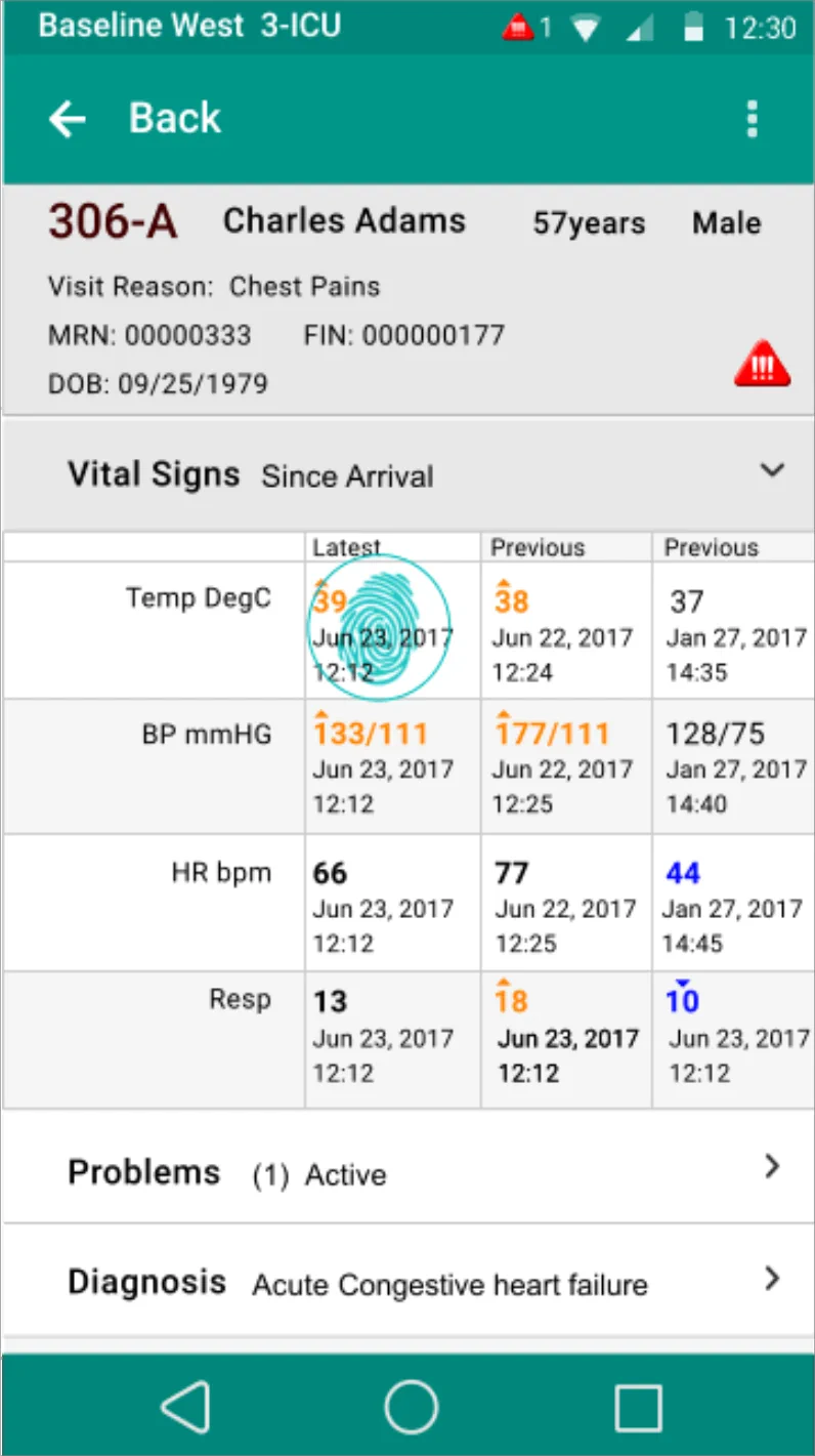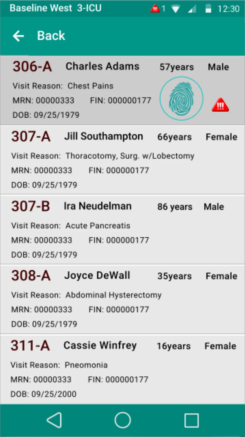 This Early Prototype demonstrates how a clinician can observe a patient directly from an app on their Android phone by connecting directly to hospital devices. The requirement was to use existing desktop and mobile functionality re-designed into an Android interface. This workflow shows: •Extended patient list with real-time alert symbols.•Selecting a patient from the patient list opens the CareLink dashboard initially.•Due and overdue display for meds and treatments.•Displays device alerts such as bed positioning and vitals.•Clicking on data cells can bring up secondary granular data.